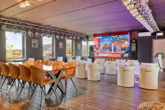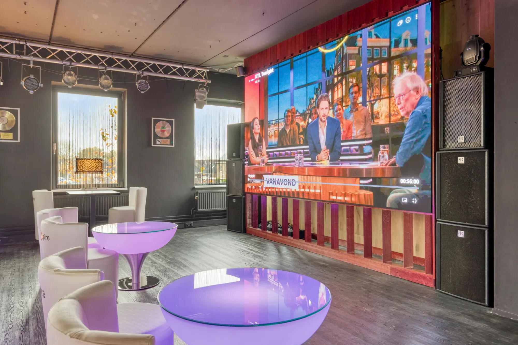 De ruimte is uitgerust met een indrukwekkend LED-scherm van 3,5 meter breed en 2 meter hoog, waarmee elke gelegenheid een extra dimensie krijgt. Toon persoonlijke beelden, branding, presentaties of creëer de perfecte sfeer met visuele content die volledig aansluit bij jouw event.