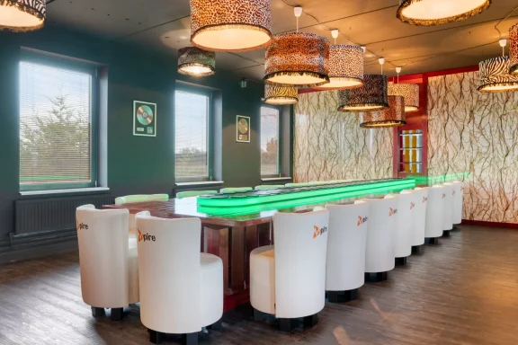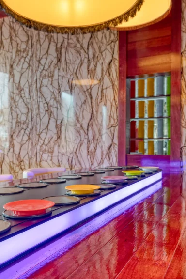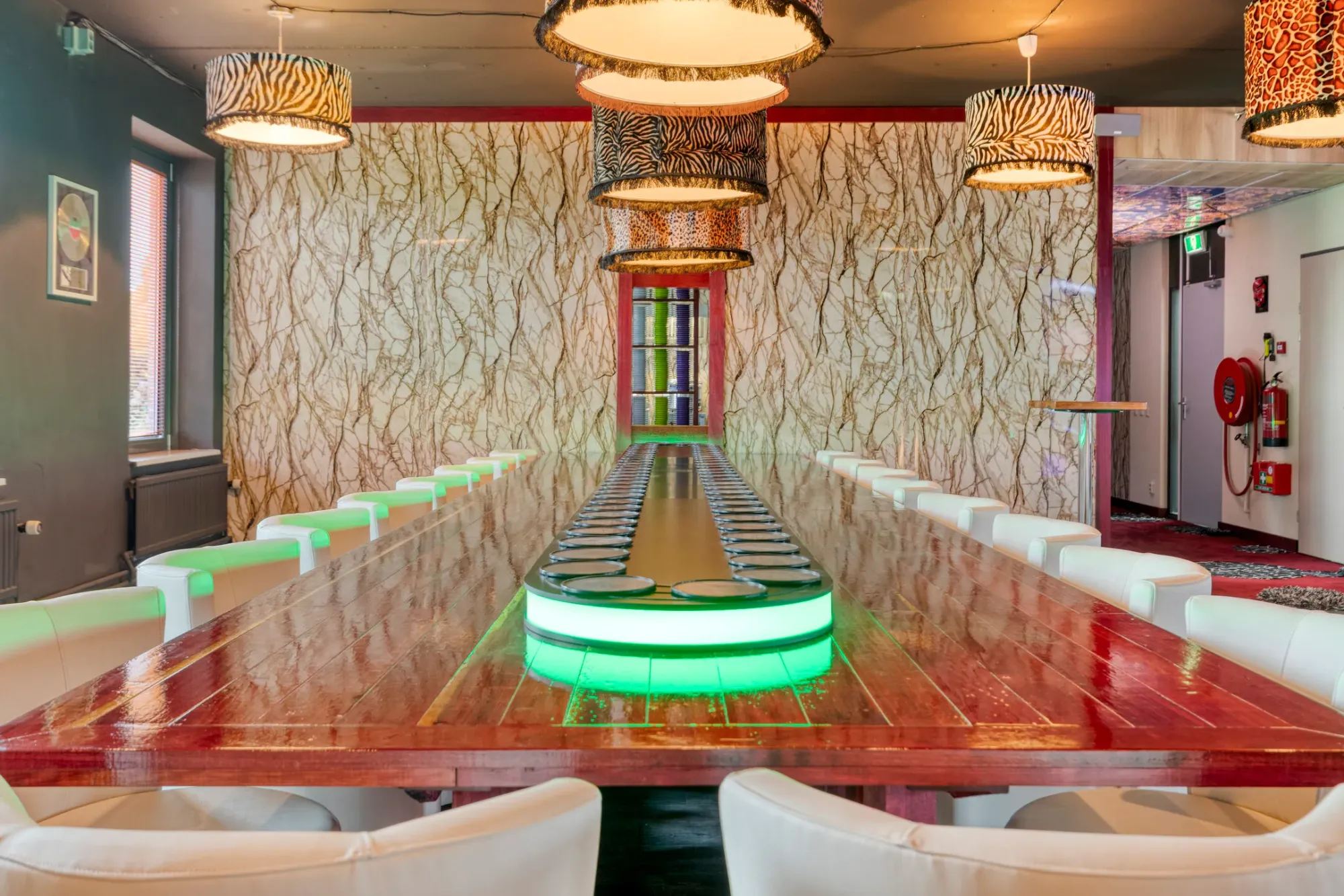 Onze exclusieve ruimte biedt plaats aan maximaal 18 personen, ideaal voor intieme diners, zakelijke bijeenkomsten of bijzondere vieringen. Terwijl de gerechten rustig aan je voorbijglijden op de lopende band, ontstaat er een dynamische en interactieve manier van tafelen die uitnodigt tot ontdekken, delen en genieten.